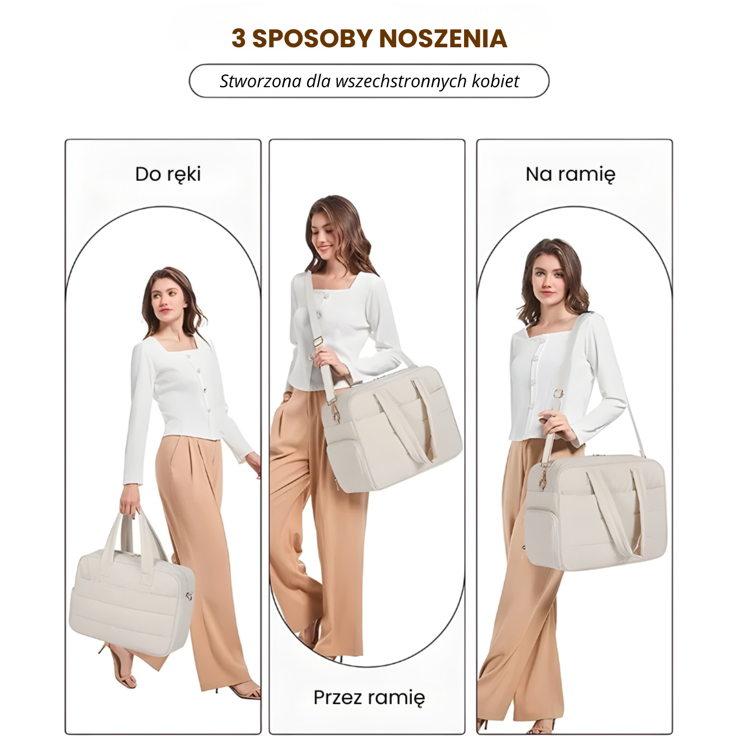 Tak! Torba ma specjalną przegrodę, w której bez problemu zmieścisz laptopa do 15,6 cala wraz z dokumentami.